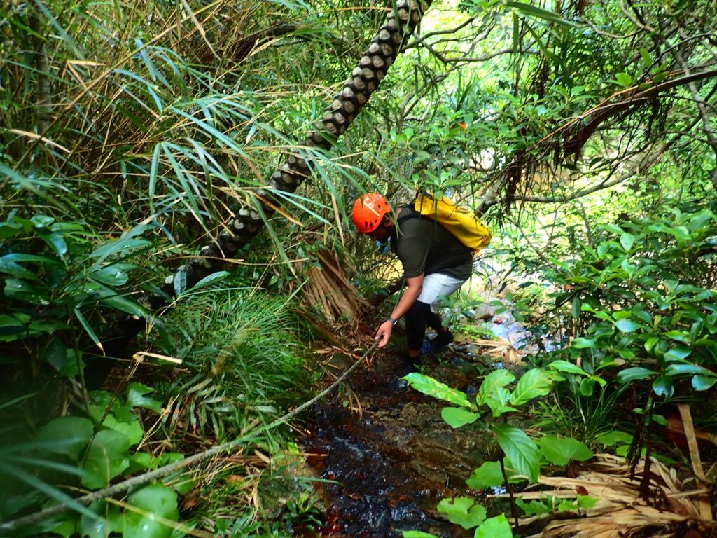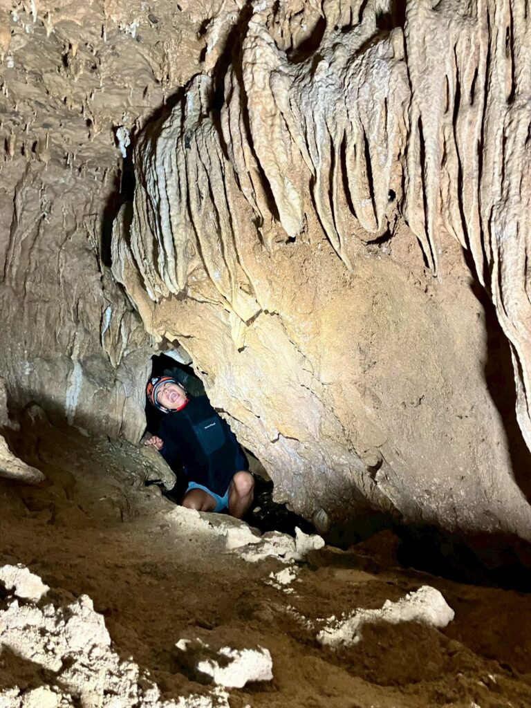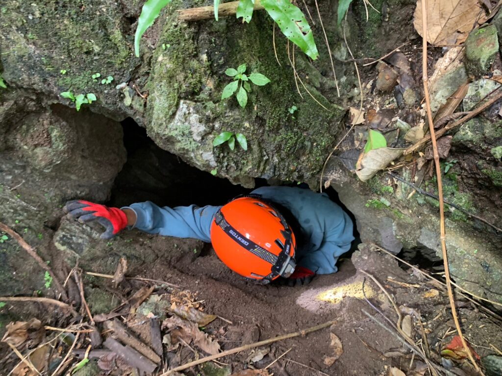 - ヘルメット、ヘッドライト等、洞窟探検用装備一式