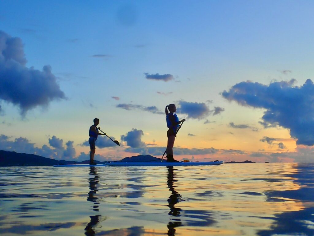 ※参加可能年齢は小学生以上60歳未満。小学生のお子様はお一人あたり1,000円引きでご案内致します。小学生未満のお子様には夕暮れシーカヤックツアーがおすすめです。